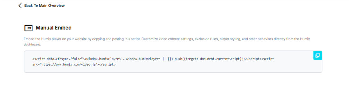 Copia e incolla il codice di incorporamento fornito direttamente sul tuo sito. In alternativa, utilizza il plugin video se stai usando WordPress come CMS per aggiungere lo script di incorporamento tramite il Plugin.
