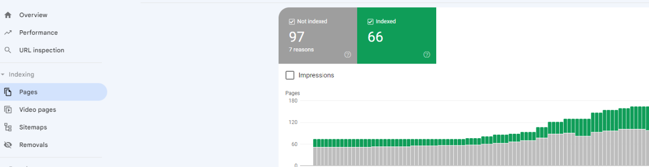- Pages Not Indexed: The "Pages" section in Google Search Console shows a number of pages that have been discovered but not indexed. This can happen for various reasons, such as duplicate URLs, alternative versions of a page, or issues with the page content.