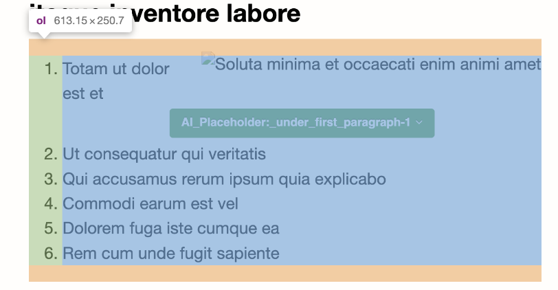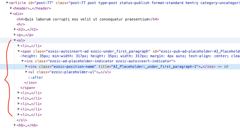 As an example, let's use this placeholder that appears inside an ordered list element. The ad may look unappealing so we will try and create a CSS filter to prevent it: