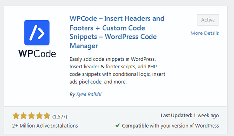 - Instala el plugin WPCode.