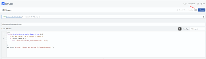 function disable_ads_meta_tag_for_logged_in_users() {