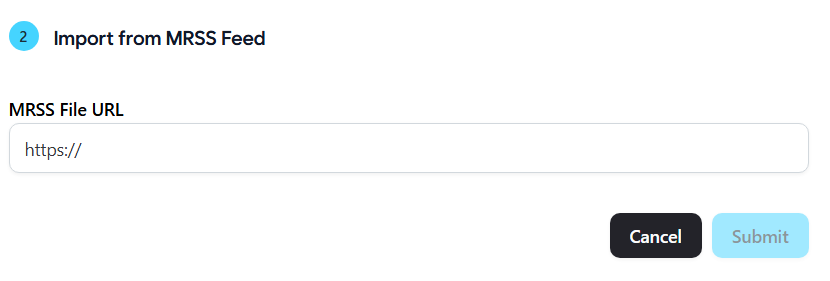Si les vidéos de votre flux MRSS ne s'importent pas, assurez-vous d'abord que l'URL du flux est correcte et accessible publiquement. Le flux doit être un XML correctement structuré et inclure des enclosures média valides. Les flux volumineux peuvent prendre plus de temps à être traités. Notez que les vidéos déjà téléchargées à partir du même flux ne seront pas réimportées.
