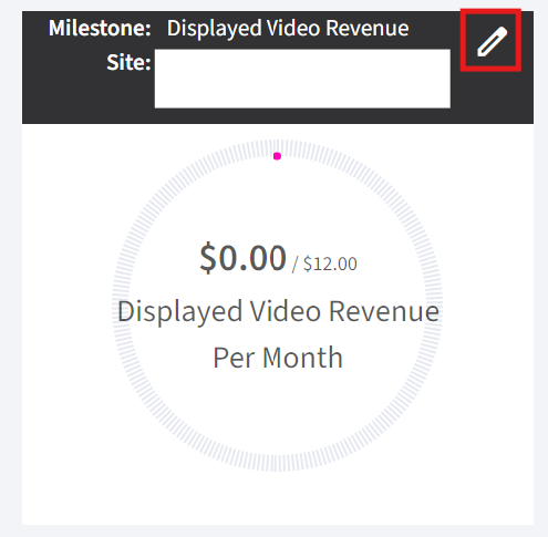 • Step 2: Follow guided prompts to select a timeframe (overall or monthly), choose the site from your list of domains, input the desired value to achieve, and name the milestone for easy reference (e.g., Total Video Revenue Goal $50).