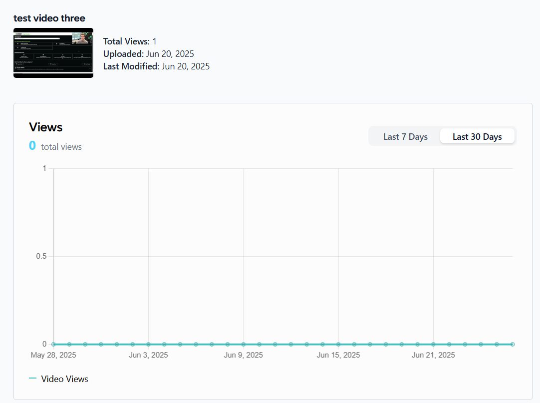 Open.Video propose des analyses au niveau des vidéos, y compris le nombre total de vues, les vues au cours des 7 ou 30 derniers jours, les emplacements des spectateurs, les taux de rétention de l'audience et les répartitions par pays.
