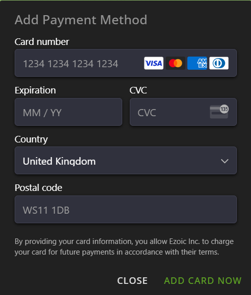 A pop-up will show for you to add your card information.
