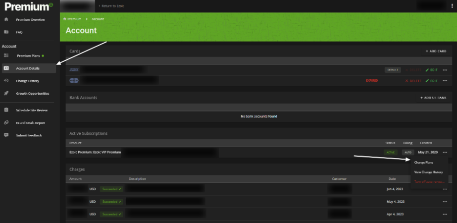To change plans all you need to do is follow these 5 Steps in your Premium Dashboard: