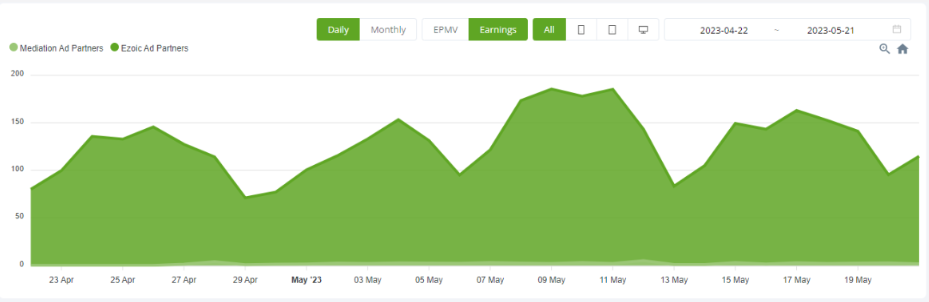 1. Ezoic Dashboard > 'Home' > Ad Partner Estimated Earnings