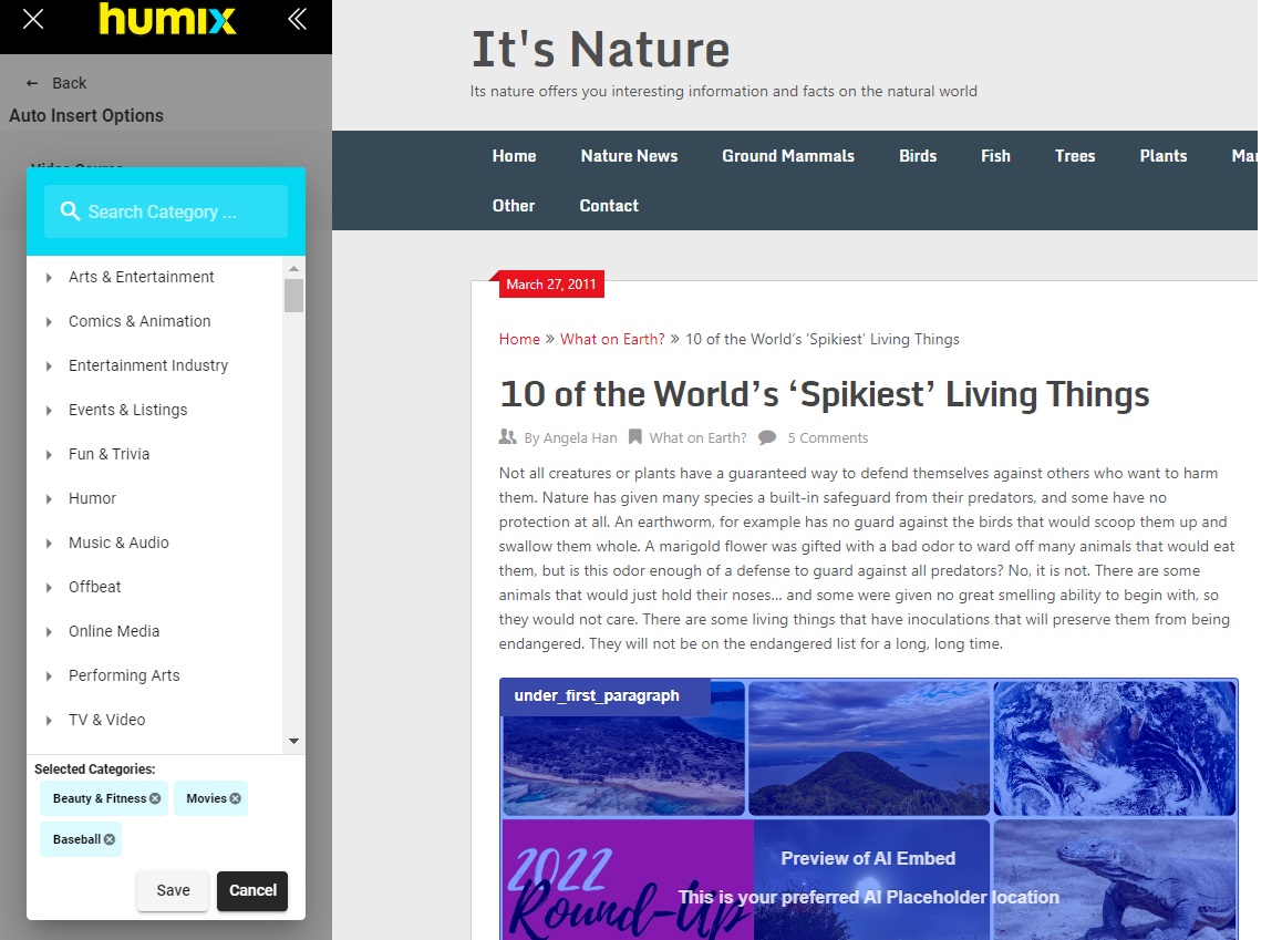 • Soluzione: Assicurati che l'estensione Ezoic Chrome sia attivata e che tu abbia selezionato “Humix” nella barra laterale. Se i posizionamenti non appaiono ancora, visita di nuovo la pagina specifica del tuo sito web dove desideri gestire le posizioni di inserimento automatico e ricarica.