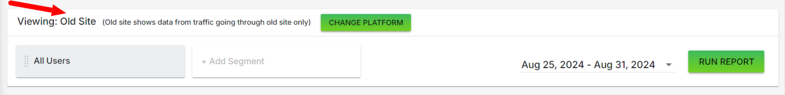 Utilize Ezoic’s Big Data Analytics to identify traffic that is not benefitting from Ezoic’s optimizations. Navigate to the Pages report and select ‘Old Site’ under 'Platform' to view data from all traffic passing through Ezoic that does not have optimization tools applied.