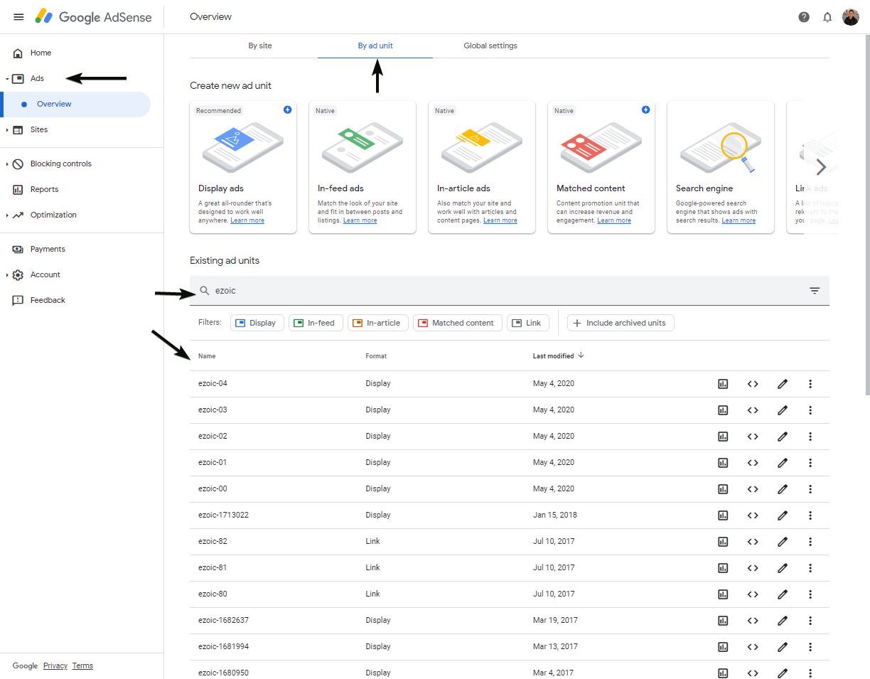 2. Mediation: Ezoic's Mediation feature lets publishers link their existing ad networks, such as AdSense, to their Ezoic account. When Ezoic determines that an existing partner will pay more, it will serve ads from those partners. These ad units can be identified in your AdSense account under Reports > Manage custom channels by searching for 'ezoic'.