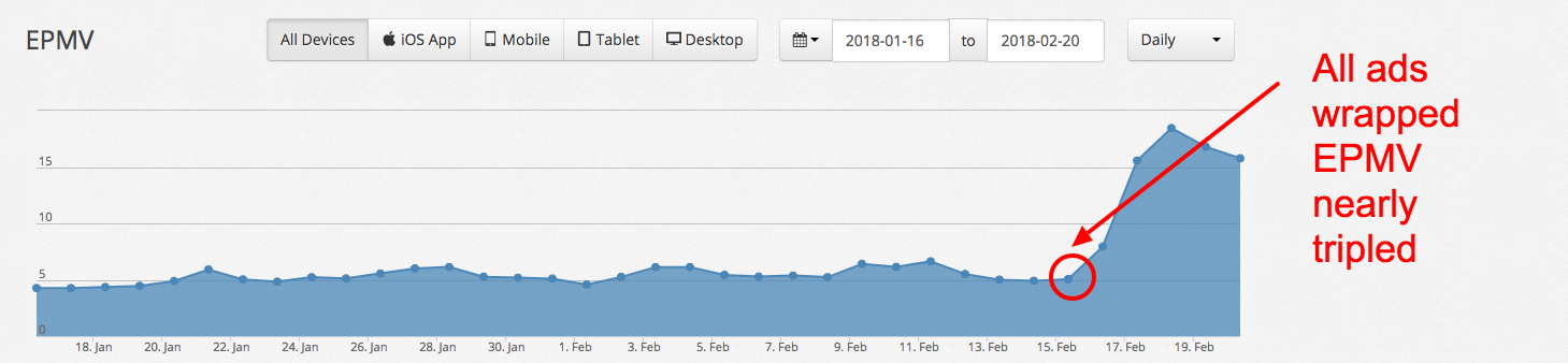 This publisher saw a 43% increase in EPMV when they made sure that all ads on their site's pages were wrapped.